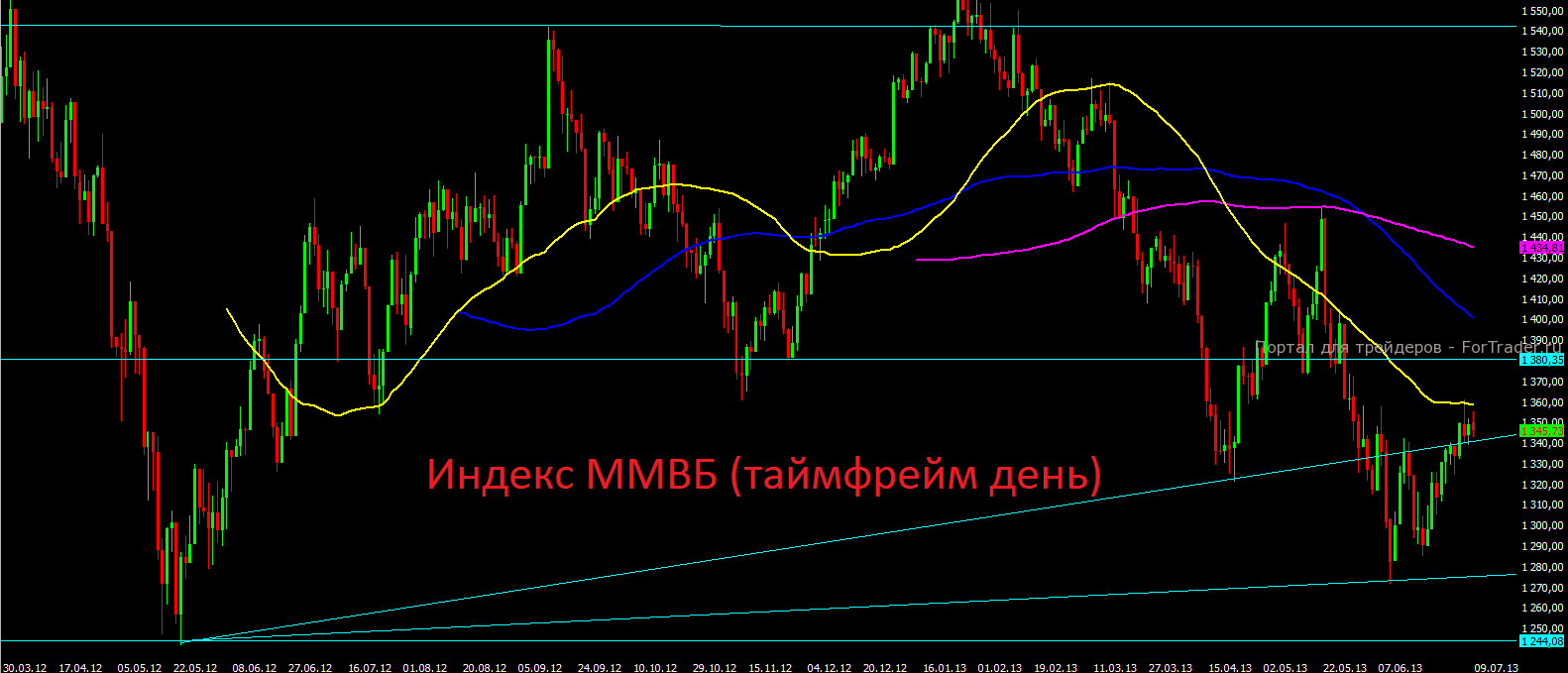Стоит отметить, что Россия не является здесь исключением. Вновь аутсайдерами последних дней выступают именно все развивающиеся рынки и слома этой динамики пока ждать не стоит. Все деньги продолжают идти именно в развитые рынки, так, как с них проще унести ноги крупным инвесторам в случае масштабной коррекции. Раз подобная тенденция продолжает сохраняться, то сразу напрашивается вывод: крупные инвесторы не верят в быстрое восстановление мировой экономики и в дальнейший рост на мировых финансовых рынках. Продолжает пересматривать в худшую сторону свои прогнозы относительно темпов роста ВВП и МВФ. Согласно обновленной версии прогноза мировая экономика в текущем году вырастет лишь на 3,1%, что на 0.2% меньше предыдущих ожиданий. Под пересмотр попали темпы роста ВВП почти всех стран. Что же касается России, то тут оценка МВФ стала ужасно пессимистичной — рост ВВП России в 2013 г. составит 2,5%, в то время как в апрельском прогнозе сообщалось о росте в 3,4%. Также масло в огонь подлило и рейтинговое агентство S&P, понизив кредитный рейтинг Италии с BBB+ до BBB, с негативным прогнозом.