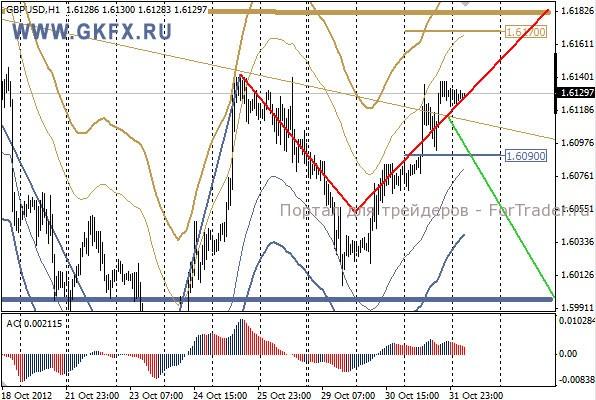 Биржи в США все же открылись вчера после урагана, но с негативным настроением. Однако на европейских торгах по рекомендации можно было зайти и забрать 30-40 пунктов. Пара EURUSD все еще стоит на перепутье по какому варианту пойти. Я склоняюсь к красному, так как на данные момент нет поводов для роста евро. Индикатор АО зажимается. Цена формирует некий треугольник на часовом графике, поэтому выход из него может пойти в любую сторону. Диапазон на день отмечен уровнями на графике. Сегодня вне рынка.