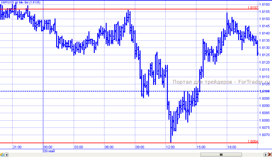 Динамика фунта в среду была менее однозначной: падение сменилось достаточно активным восстановлением. В первой половине торговых суток пара демонстрировала снижение на фоне достаточно слабой собственной макроэкономической статистики и снижения интереса к рискованным активам. В рамках данного движения цены преодолели поддержку 1,6100 и достигли локального минимума на 1,6064, оттолкнувшись от которого устремились вверх и отыграли практически все потери. Но к закрытию дня возобновили снижение к поддержке 1,6130.