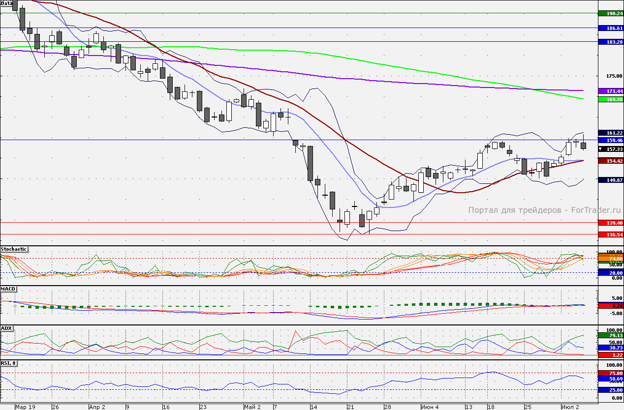 Ближайшие уровни сопротивления: 160,00/165,00