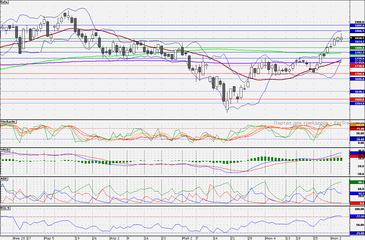 Ближайшие уровни поддержки: 1820,00/1800,00/1780,00/1750,00/1740,0