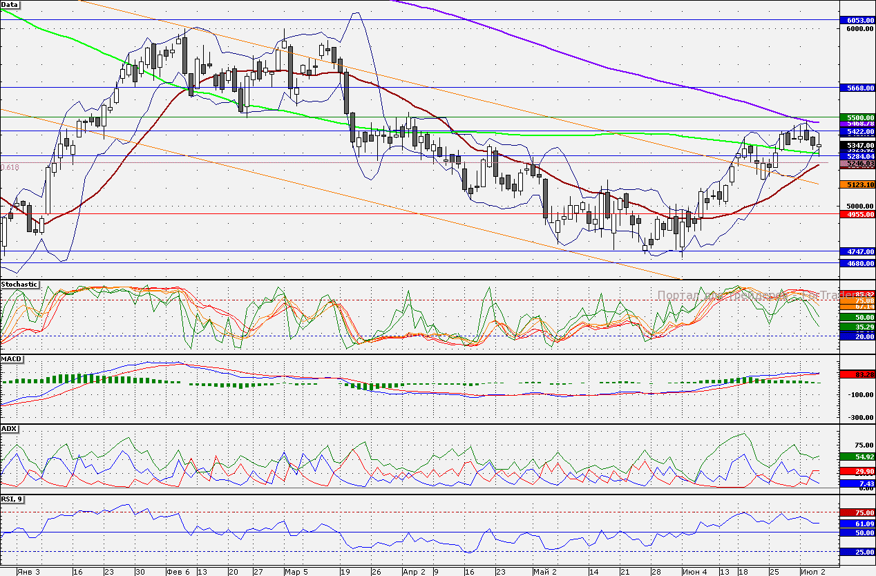 Ближайшие уровни сопротивления: 5400,00/5467,00/5500,00