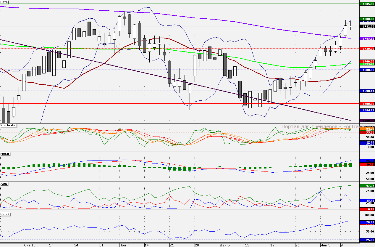 Ближайшие уровни сопротивления: 1800,00/1820,00/1835,00/1850,00