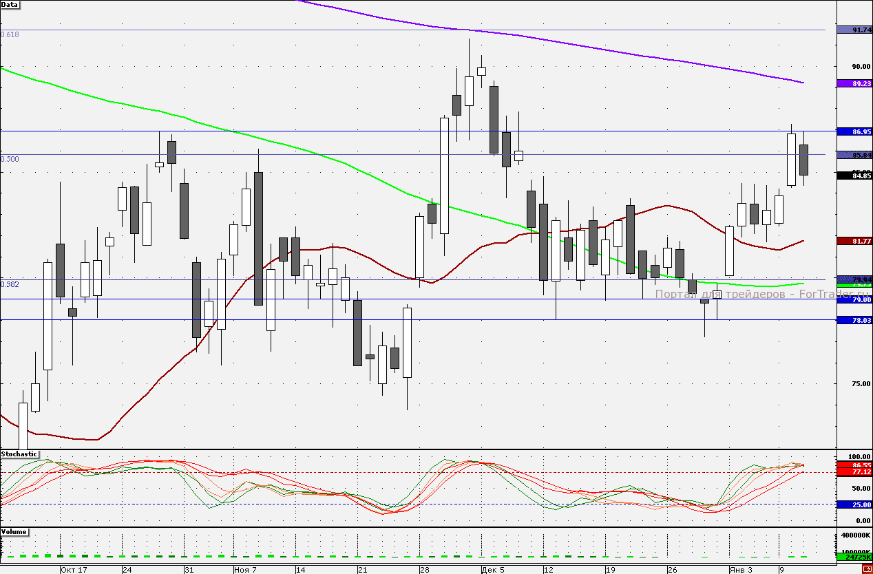 Ближайшие уровни сопротивления: 87,00/89,23/90,00/91,28/92,50