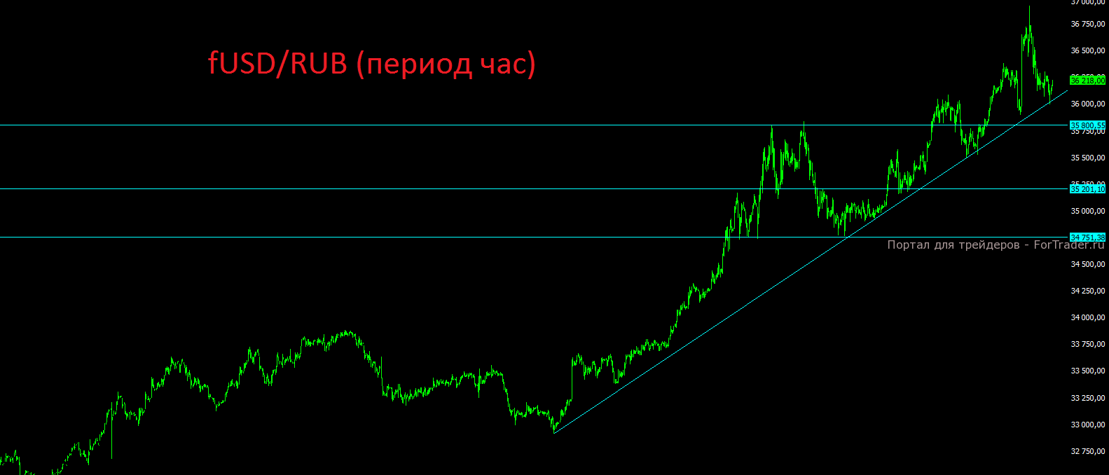 Фьючерс на валютную пару доллар-рубль продолжает находиться в восходящем тренде, поэтому шансы на дальнейший рост пока велики.