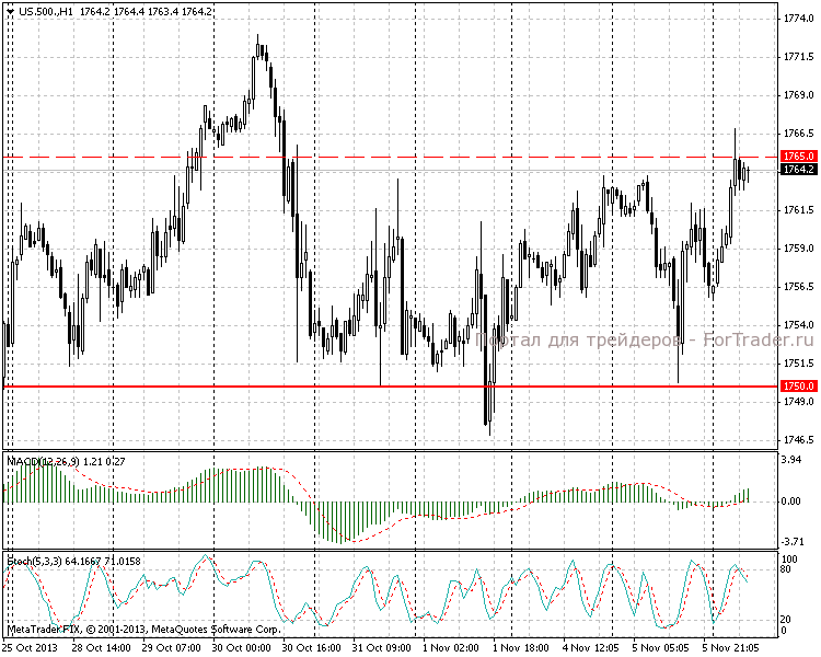 На часовом таймфрейме наблюдается флет. Сопротивление представлено уровнем 1765,0, а поддержка – 1750,0. Высота столбиков индикатора MACD по-прежнему небольшая. Линии часового стохастика пересеклись и вышли из зоны перекупленности.