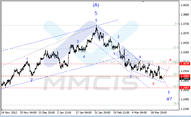 Альтернативный сценарий предполагает, что нисходящий импульс завершен в районе текущих минимумов и текущая динамика пары развивается в рамках коррекционной волны «а», которая будет завершена в районе отметки 1.3078