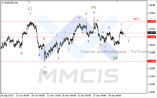 Поэтому в качестве основного сценария аналитики по-прежнему рассматривают возможность незначительного ослабления курса пары к отметке 1.3625 в рамках волны «2». В то же время более сильное снижение может послужить сигналом к отмене «бычьего» сценария. Альтернативный вариант предполагает завершение коррекционной волны в районе текущих минимумов и возобновление роста пары к отметке 1.3830 в рамках волны «3».