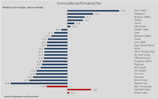 Неутешительные экономические перспективы добавили порцию негатива в фундаментальную картину на рынке зависимых от роста сырьевых товаров, в частности в сегменте энергоресурсов и промышленных металлов. На энергетическом рынке все крупные фьючерсные контракты на сырую нефть и природный газ попали под прицел продавцов. Промышленные металлы сдали позиции под давлением меди, которая опустилась до семинедельного минимума на фоне замедления экономической активности в Германии и промышленного производства в Китае.