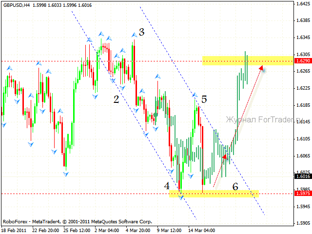 Фунт отработал нисходящую симметричную модель с целью 1.5980. На текущий момент стоит ожидать пробитие нисходящего канала и рост пары к уровню 1.6290. Стоп ставим ниже 1.5970. С выходом цены за границу канала можно наращивать объем длинных позиций.