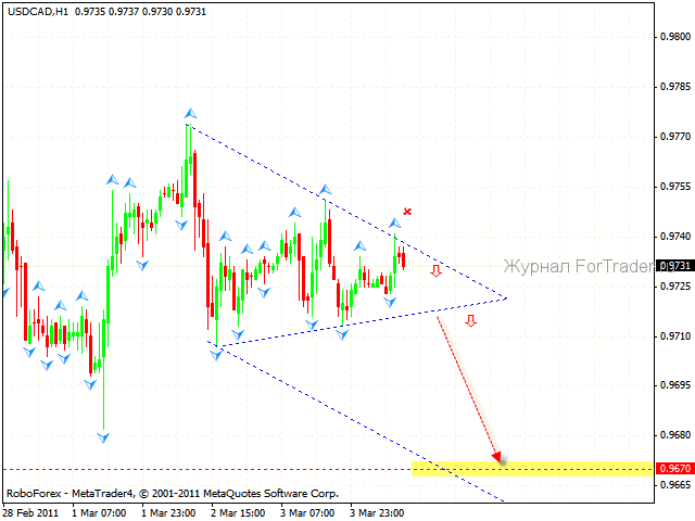 Как видно из анализа usd cad канадец зажат в «треугольнике». С выходом цены за нижнюю границу можно пробовать продажи канадца со стопом выше 0.9745. Целью снижения выступает область 0.9670. Продажи с минимальным риском можно рассматривать вблизи верхней границы «треугольника». Отменой варианта станет рост пары выше уровня 0.9745.