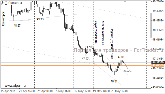 Торги в среду начались с роста доллара и евро. Пока это связано с украинским фактором. На юго-востоке Украины продолжается карательная операция, долг за газ не погашен, Кремль занял выжидательную позицию и не торопится поздравлять П. Порошенко с победой на президентских выборах, которые прошли 25 мая.