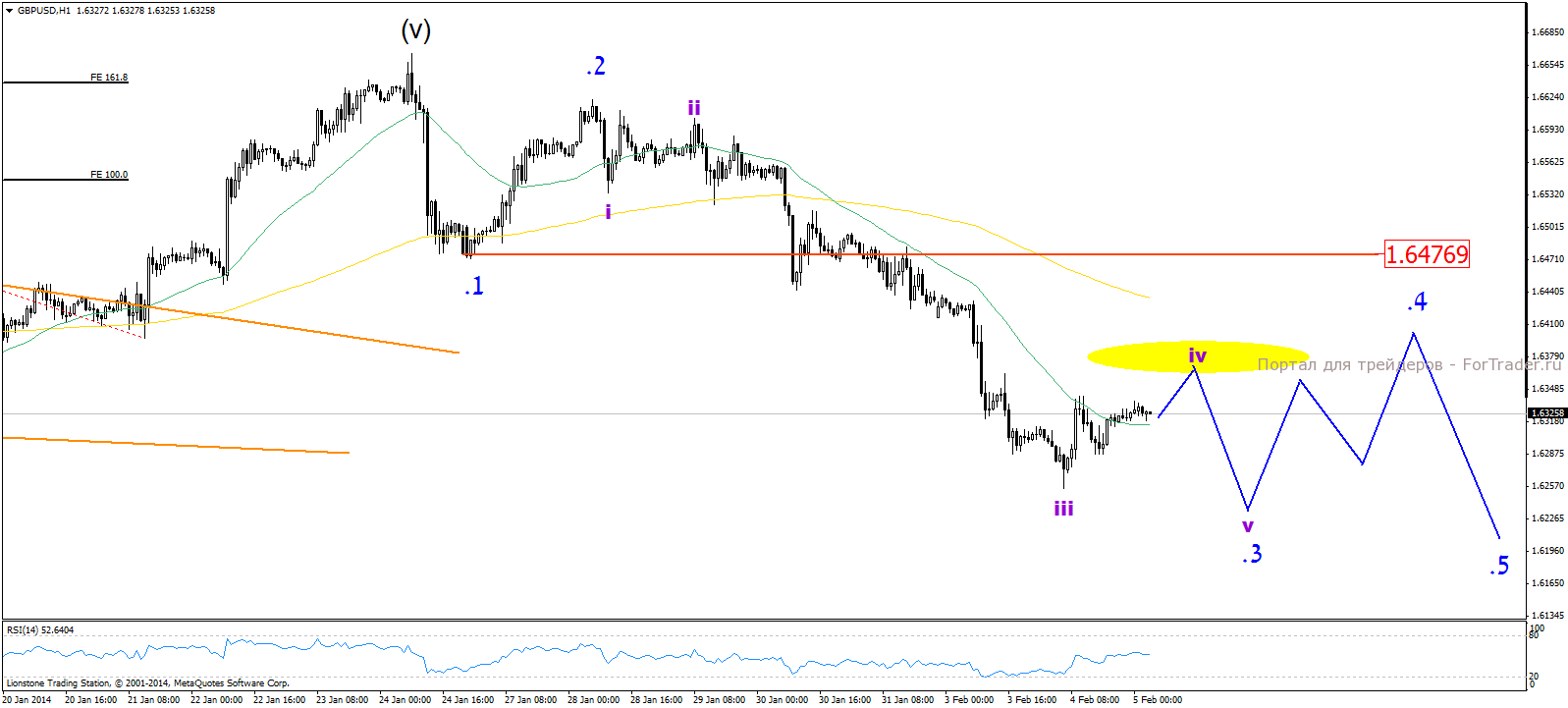 Основная тенденция пересмотрена в сторону снижения пары. По всей видимости, сейчас цена находится в стадии незначительной коррекции, после чего можно ожидать продолжения снижения ближе к отметке 1.62. Пробитие выше уровня 1.6475 может послужить хорошей поддержкой и переломить нисходящую тенденцию.