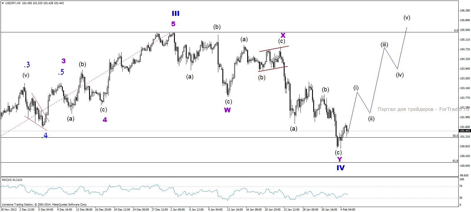 Возвращаемся к идее с коррекцией, за которой должен последовать новый рост. Предположительно, пара завершила эту коррекцию на отметке 100.70. Можно ожидать формирования восходящего импульса по направлению к 103.