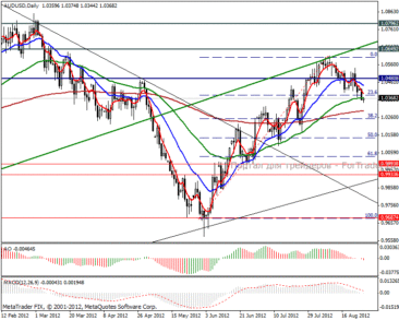 Что касается более длительных позиций, то дневной график показывает цель 1.02704 пунктов, потом коррекционный рост к 1.04302 пунктов и возвращение к отметке 1.02089 пунктов.