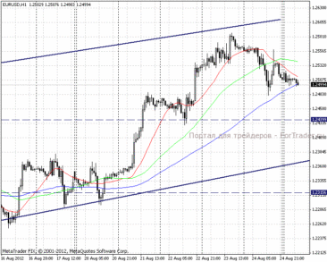 Внутридневная торговля продолжается внутри восходящего канала, сила роста ценового графика со временем ослабевает, что подсказывает на наличие сильных продавцов в данном активе. По нашим прогнозам, на сегодняшний день ожидается движение цены в боковом тренде, значительное изменение цены может быть 29 августа, начиная со второй половины торгового дня.