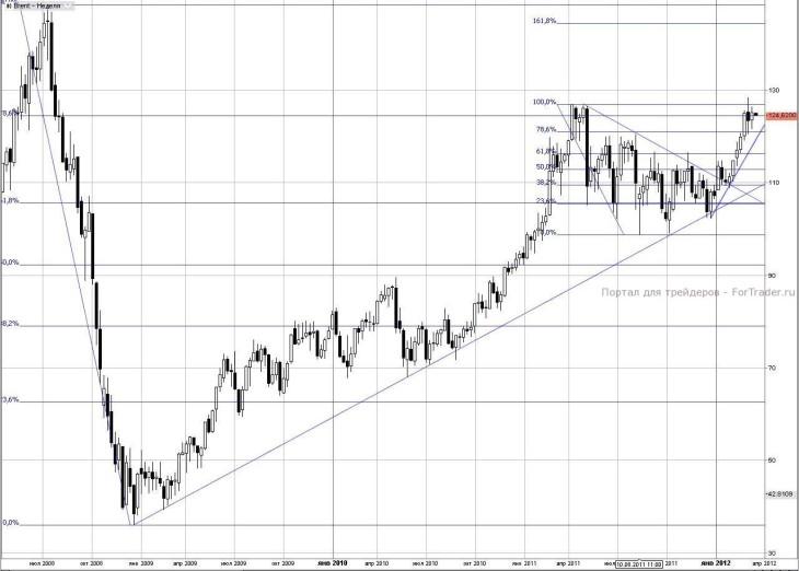 Тем не менее, это рубежи для стратегов, спекулянтам надо следить за сохранностью уровня 121 доллара за баррель, где лежит всходящий тренд декабря 2011 года и линия коррекции по Фибо 78,6% к падению котировок в прошлом году.