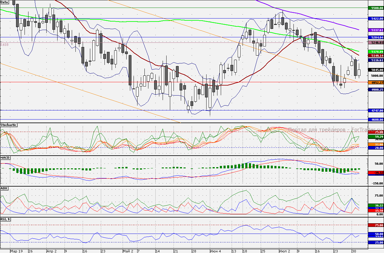 Ближайшие уровни поддержки: 5000,00/4900,00/4750,00