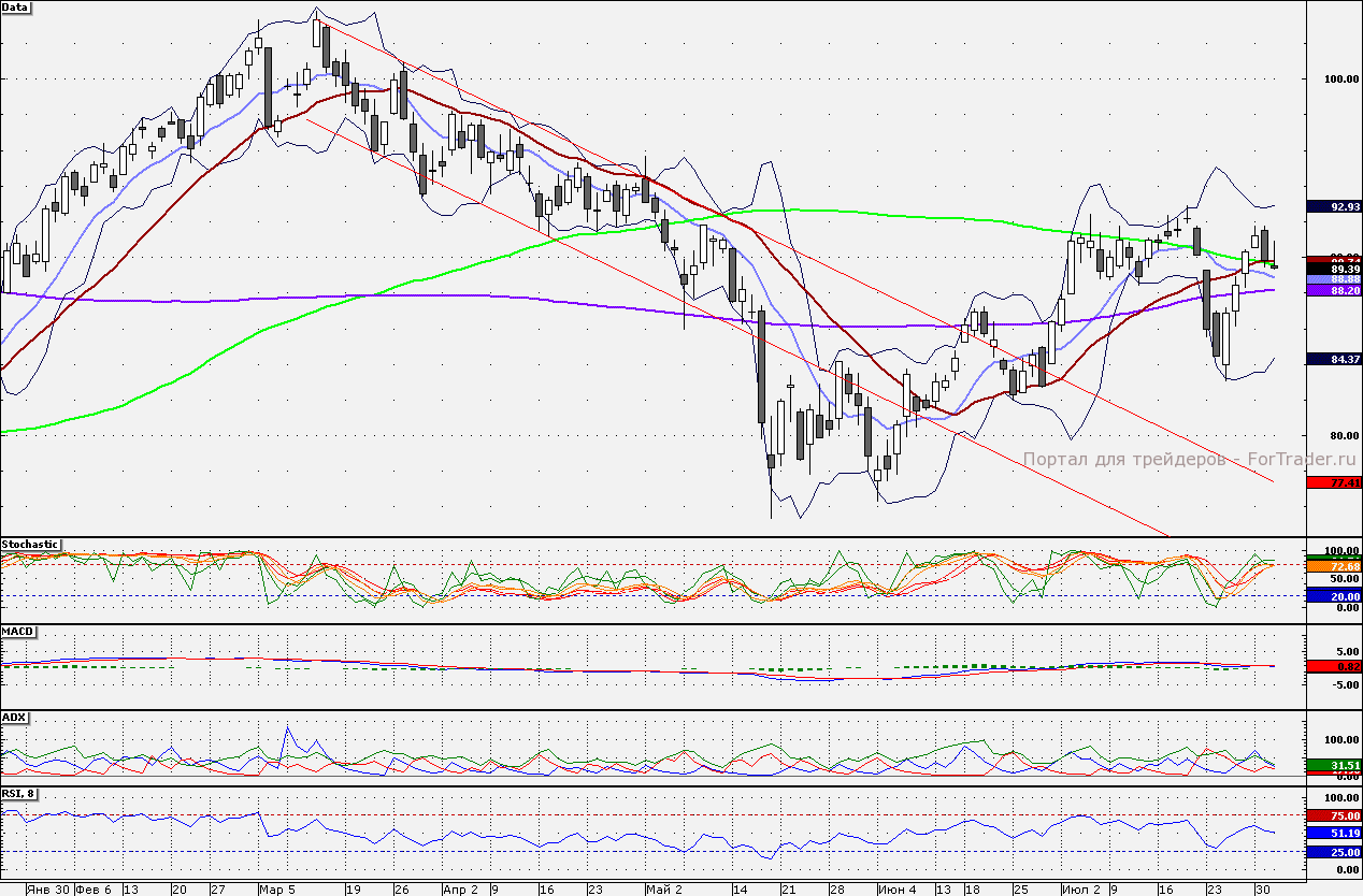 Ближайшие уровни поддержки: 88,88/88,20/85,00
