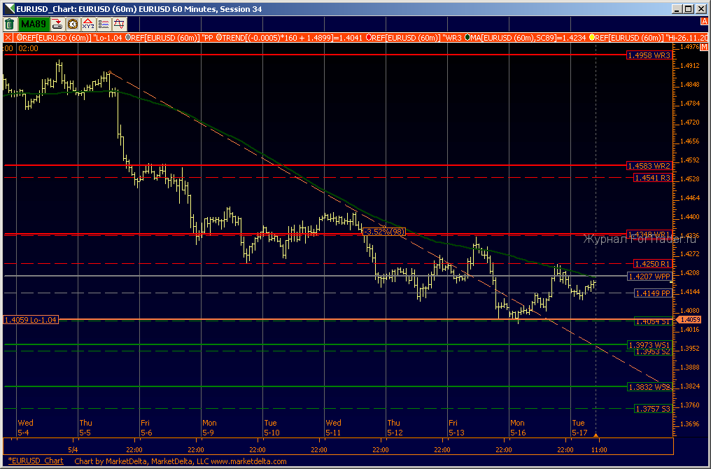 Уровни шорт на сегодня: 1.4186-1.4207 (WPP; VAL; MA89)/ 1.4224-1.4251 (VAL (W); IBH; Mid(W))/ 1.3438-1.4348 (R2; WR1; Hi-13.05)/ 1.4402-1.4422(NPOC-11.05; VAH(W))/ 1.4450 (SP-6.05; Hi-9.05)