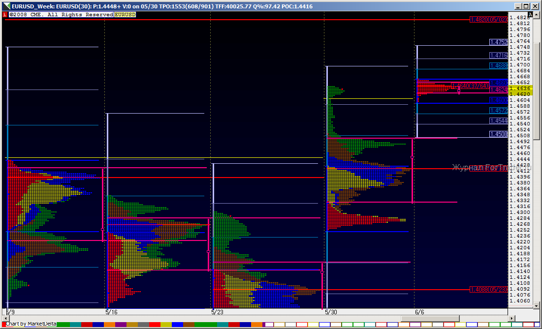 Закончилась неделя экспирации по июньским опциям, как тут же начинается не менее бойкая неделя ролловера на июньские же фьючерсы. Открытие текущей недели как и прошедшей бычье, вне зоны баланса как пятницы , так и недели в целом. На дневках уровни контроля РОС постоянно повышаются, и рисуют сильное трендовое движение. Несомненно у рынка есть инерция и тот факт что евро сейчас разгоняют, будет означать, что профучастники нацелились на деньги розничных инвесторов. Как? А вот как. Индекс настроений ретэйл трейдеров сигнализирует о том , что народ начинает втягиваться в шортовые позиции. Отлично. Вся та публика которая сейчас увидела перекупленность на индикаторах и продала, будет покупать как обезумевшая на стопране, который им устроят профучастники. До 1.4800 конечно еще потерпят… на 1.4770-1.4900 покупать начнуть …Аминь…Для тех кто стремиться играть на стороне профучастников, целесообразно искать заходы лонг на откатах. Желательно если эти откаты будут случаться на плохих новостях. Удачных всем трейдов!!!