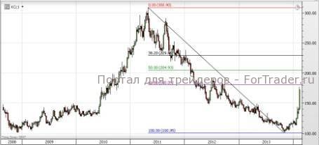 Не нужно забывать о том, что до ноября цены на кофе непрерывно снижались на протяжении более двух лет. В этот раз кофе потеряло более двух третей своей стоимости, прежде всего, из-за увеличения предложения. В рамках этого движения первой целью служит уровень 180,4 цента за фунт, который представляет собой коррекцию на 38,2% нисходящего движения с 2011 года до ноября прошлого года.