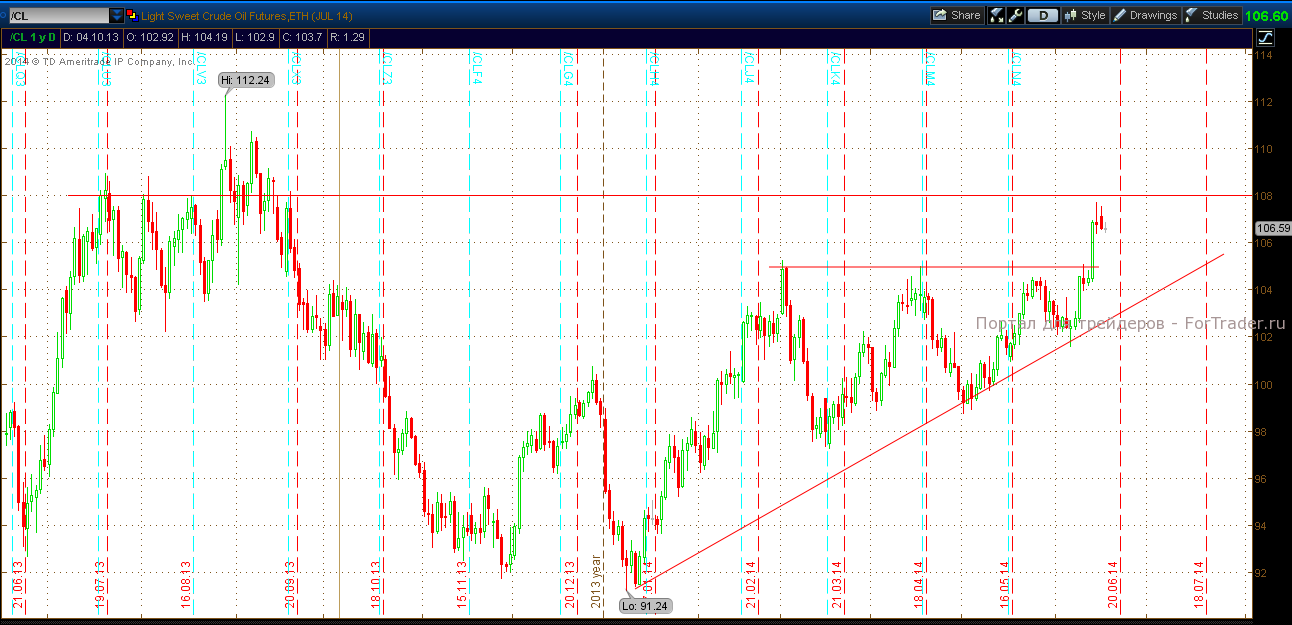 Нефтяные котировки корректируются после вчерашнего роста, который был вызван ухудшением ситуации в Ираке и газовым конфликтом между Украиной и Россией. Цены на WTI с поставкой в июле на вчерашних торгах в Нью-Йорке достигли отметки $107,5 за баррель. Цены на Brent взлетели до $114 за баррель.