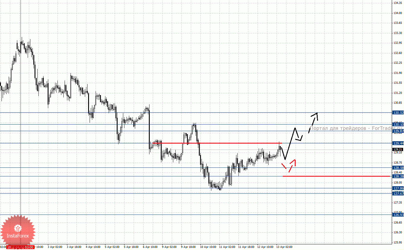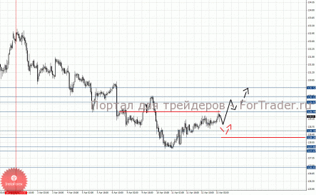 По паре Евро/Доллар важными уровнями являются: 1.3291, 1.3258, 1.3243, 1.3212, 1.3157, 1.3142, 1.3124 и 1.3087. Здесь продолжения движения кверху ожидаем после пробоя 1.3212, в данном случае цель 1.3243, в коридоре 1.3243 – 1.3258 консолидация цены. Потенциальным значением для верха считаем уровень 1.3291, по достижении которого ожидаем откат книзу. Корректировочное нисходящее движение возможно в коридоре 1.3157 – 1.3142, пробой последнего значения приведет к углубленной коррекции, здесь цель 1.3124, от этого уровня высока вероятность разворота кверху, его пробой приведет к отмене восходящей структуры от 9 апреля, в данном случае цель 1.3087.