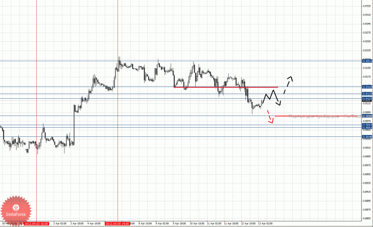 По паре Доллар/Франк ключевым уровня являются: 0.9211, 0.9153, 0.9137, 0.9127, 0.9088, 0.9067, 0.9061 и 0.9040. Здесь продолжения движения книзу ожидаем после пробоя 0.9088, в данном случае цель 0.9067, в коридоре 0.9067 – 0.9061 консолидация цены. Потенциальным значением для низа считаем уровень 0.9040, по достижении которого ожидаем откат кверху. Корректировочное восходящее движение возможно в коридоре 0.9127 – 0.9137, пробой последнего значения приведет к углубленной коррекции, здесь цель 0.9153, от этого уровня высока вероятность разворота книзу. Пробой 0.9153 будет располагать к развитию восходящей структуры, здесь потенциальная цель – 0.9211, до этого уровня ожидаем оформления начальных условий для последующего развития цикла.