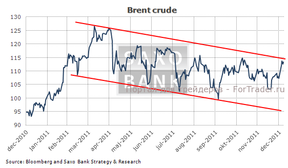 В энергетическом секторе, за исключением американского природного газа, который закрепился в медвежьем тренде в условиях обильного предложения в США благодаря сланцевому газу, ожидается сохранение торговли в диапазонах на первых стадиях 2012 года. Две самые большие угрозы для цен на нефть − это разрастание конфликта в Персидском заливе (Иран и Ирак) и ухудшение кризиса в еврозоне.