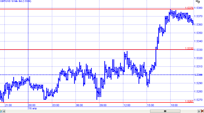 GBP/USD также продолжила укрепление, по большей части стимулированное слабыми отчетами из США. Отрицательные показатели мартовской инфляции помогли паре достичь максимума 1,5378 от уровня открытия 1,5278 и закрылась вблизи 1,5370.