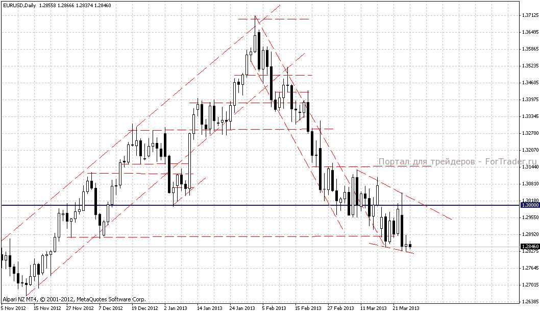 Исходя из простого жизненного опыта, чем дольше затягивается открытие банков на Кипре, тем сильнее может затем последовать негативная реакция вкладчиков. И, к сожалению, время уже упущено. Агрессивно прямо сейчас можно поставить на продажу евро, но, будьте готовы к тому, что в условиях «тонкого» рынка колебания могут быть значительными и мало предсказуемыми. Для более консервативных действий рекомендуется дождаться закрытия недельной свечи.
