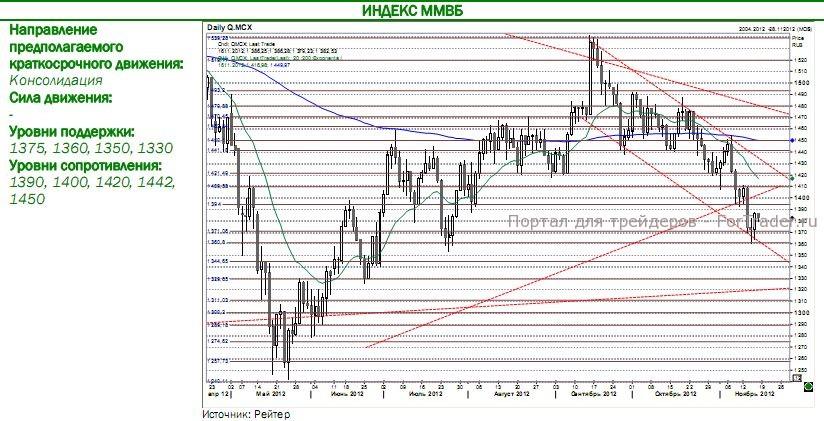 Сегодня утром позитивный внешний фон на рынках формируется надеждами на расширение монетарных стимулов в Японии за которые ратует оппозиционная партия, которая, как ожидается, усилит свои позиции после внеочередных парламентских выборов в декабре. Сегодня в фокусе внимания инвесторов будет США — помимо начала переговоров по fiscal cliff, сегодня выйдут данные по пром. производству за октябрь (консенсус-прогноз: +0,2% м/м), которые вполне могут оказаться хуже ожиданий из-за все того же разового фактора — урагана Сэнди. В преддверие этих событий, как мы полагаем, инвесторы не будут рисковать, а рынки — большую часть дня будут консолидироваться чуть ниже уровней закрытия вчерашнего дня, опасаясь негативных новостей.