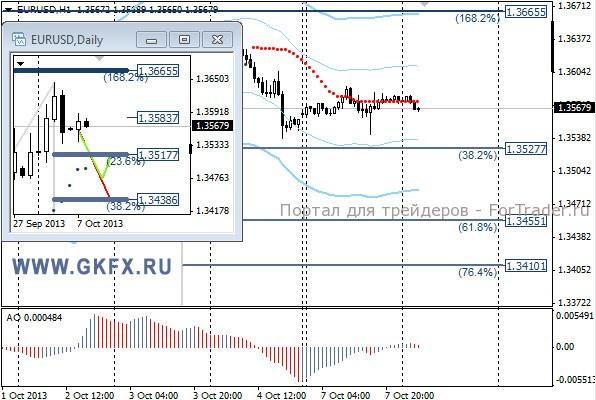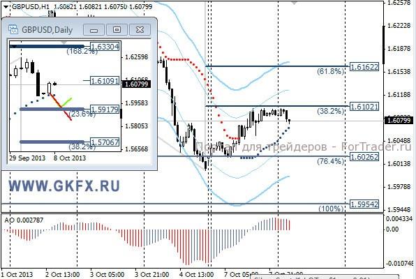 Пара EURUSD консолидировалась в понедельник, остановив снижение. Уточненные данные по ВВП Еврозоны не преподнесли сюрпризов. Думаю, что участники рынка к концу недели начнут нервничать, если ситуация с принятием бюджета и потолком госдолга в США не разрешится. Все находится в подвешенном состоянии и сложно судить, как себя поведет рынок. На эту неделю традиционно рассматриваю два варианта возможного движения цены, основной красный и альтернативный зеленый. Значимые уровни на сегодня отмечены на часовом графике. Индикатор АО находится в положительной зоне и снижается, указывая на коррекцию перед возможным продолжением роста. Индикатор тренда указывает на снижение. Вне рынка.