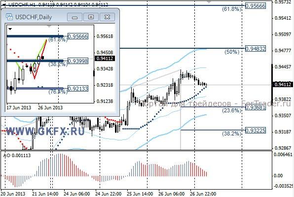 Пара USDCHF постепенно направляется к цели в районе 0,9485/ 0,9500. Сложное сопротивление в районе 0,9400 было вчера пройдено. Вероятность дойти до цели возросла. Продолжаем придерживаться плана. На этой неделе по традиции рассматриваю два варианта возможного движения цены, основной красный и альтернативный зеленый. Значимые уровни на сегодня отмечены на часовом графике. Индикатор АО находится в положительной зоне и снижается, указывая на коррекцию перед возможным продолжением роста. Индикатор тренда указывает на рост. Покупки из района 0,9400.