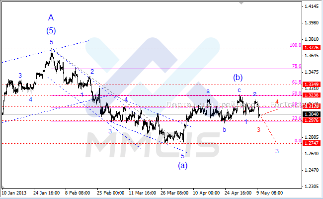 В качестве альтернативного сценария рассматривается вероятность завершения третьей волны на текущих минимумах и начало коррекционной волны «4», вершина которой расположена на уровне 1.3121.