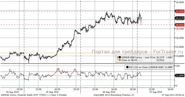 Ослабление российской валюты может продолжиться в случае преодоления отметки 36,30 за доллар. В настоящий момент курс доллара находится в боковом краткосрочном тренде, но общая тенденция явно не в пользу рубля.