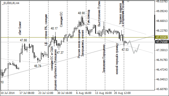 Поскольку единая валюта на валютном рынке находится под давлением, то у рубля появился шанс после проведённой встречи укрепиться до уровня 47,35. По доллару целевой уровень находится на отметке 35,83.