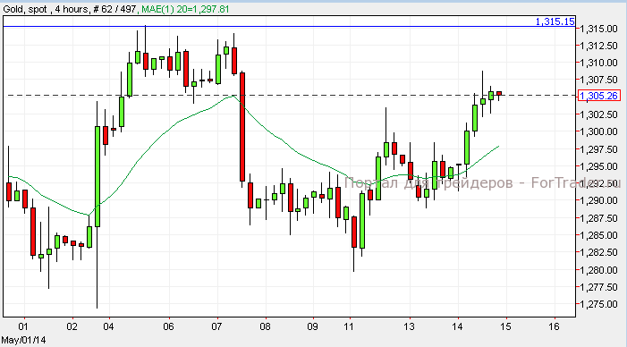 Золото подорожало и закрылось выше отметки $1,300 за унцию, поскольку Украина обернулась к покупке золота как актива-убежища. Золото может вырости к следующему уровню сопротивления $1,315, однако прорыв этого уровня сопротивления приведет драгоценный металл к отметке $1,330. Если золото упадет ниже уровня поддержки $1,295, цена снизится до отметки 1,280.