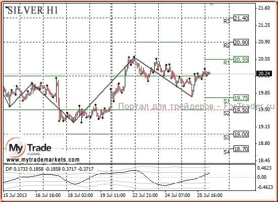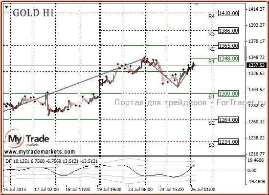 В среду цены на золото резко снизились на мнении участников рынка о том, что на июльском заседании ФРС может сократить программу QE3, так как статистика по США демонстрировала выздоровление экономики США. Вчера появились сообщения, что ФРС не планирует менять текущую политику, а участники рынка ошибаются и опять забегают вперед.