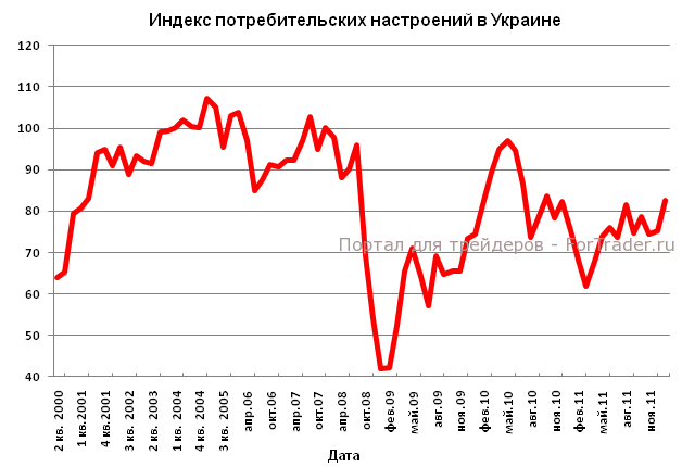 Индекс потребительских настроений в Украине в январе вырос на 7,2 пункта до 82,5. Последний раз повышение индекса более чем на 7 пунктов было зафиксировано в декабре 2009 года. Наибольший рост индекса потребительского настроения был зафиксирован в западных, центральных и северных регионах Украины, в то время, как в южных и восточных регионах темпы роста данного показателя были более умеренные.