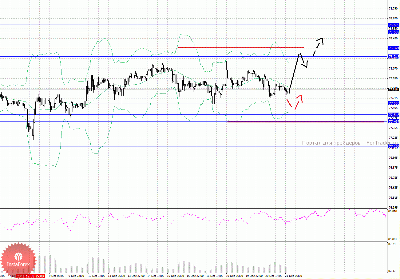 По паре Доллар/Йена ключевыми уровнями являются: 78.59, 78.50, 78.32, 78.21, 77.65. 77.51, 77.43 и 77.13. Здесь мы продолжаем следить за восходящей структурой от 8 декабря. Краткосрочное восходящее движение возможно в диапазоне 78.21 – 78.32, пробой последнего значения должен сопровождаться выраженным восходящим движением, здесь цель 78.50. Потенциальным значением для верха считаем уровень 78.59, по достижении которого ожидаем консолидированное движение в коридоре 78.50 – 78.59. Уровень 77.65 является ключевой поддержкой для верха, его пробой позволит рассчитывать на движение к 77.51, в коридоре 77.51 – 77.43 консолидация цены. Потенциальным значением для низа считаем уровень 77.13, движение к которому ожидаем после пробоя 77.13.