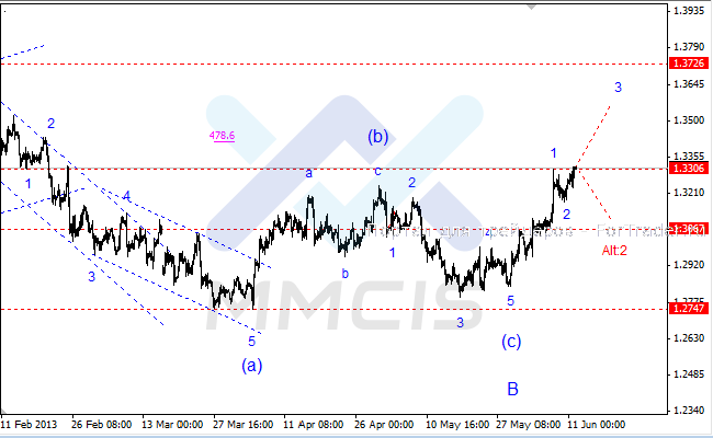 Поэтому в качестве основного сценария аналитики ожидают укрепления курса единой валюты в район 34-й фигуры в рамках волны «3» восходящего импульса. В качестве альтернативного сценария рассматривается вариант, при котором коррекция еще не завершена и продолжится до уровня 1.3067 в рамках усложненной структуры волны «Alt:2».