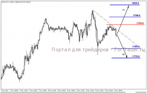 В тоже время не стоить забывать о макроэкономической статистике, запланированной на сегодня. Главными событиями сегодняшнего дня могут стать новости из-за океана, в частности, публикация данных по изменению объёма запасов на складах оптовой торговли за сентябрь, а также выступление председателя ФРС США Бена Бернанке. В случае если господин Бернанке разочарует инвесторов, котировки золота продолжат свое снижение на фоне укрепления американской валюты. Предполагаемый диапазон изменения стоимости золота в среду может стать 1775,0 – 1805,0 долларов США за тройскую унцию.