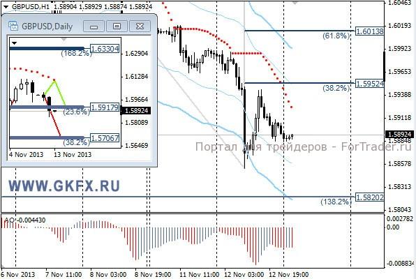 Пара GBPUSD продолжила проявлять слабость по сравнению с евро. В итоге сделка по рекомендации исполнилась, и две цели были достигнуты. Сейчас пара находится в положении для дальнейшего снижения. На этой неделе по традиции рассматриваю два варианта возможного движения цены, основной красный и альтернативный зеленый. Значимые уровни на сегодня отмечены на часовом графике. Индикатор АО находится в отрицательной зоне и снижается, указывая на желание пары двигаться вниз в данное время. Индикатор тренда указывает на снижение. Держим продажи от 1,5950 с целью 1,5820. Стоп можно перевести в безубыток.