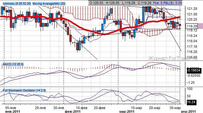 Котировки на фьючерс находятся под повышательным давлением, поднявшись выше облака Ишимоку. Ключевые скользящие средние находятся в повышательном пересечении, образовав проторгованный уровень сопротивления, ныне поддержка, по медленной скользящей средней на отметке 119 00/32.