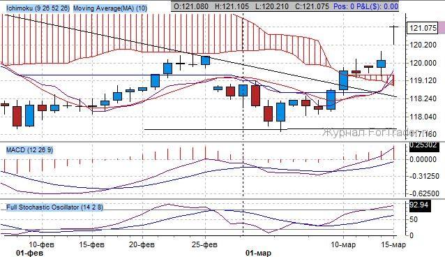 Котировки на фьючерс находятся под повышательным давлением, поднявшись выше облака Ишимоку. Ключевые скользящие средние находятся в повышательном пересечении, образовав проторгованный уровень сопротивления, ныне поддержка, по медленной скользящей средней на отметке 119 20/32.