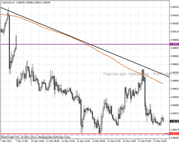 На часовом графике пара находится в сильном нисхождении внутри треугольной фигуры. Дальнейшее движение будет направлено к уровню 0.98649 пунктов, после чего вероятнее всего произойдет возобновление сильного снижения. Внутри дня рекомендуем встать в покупку и развернуться на вышеуказанном уровне.
