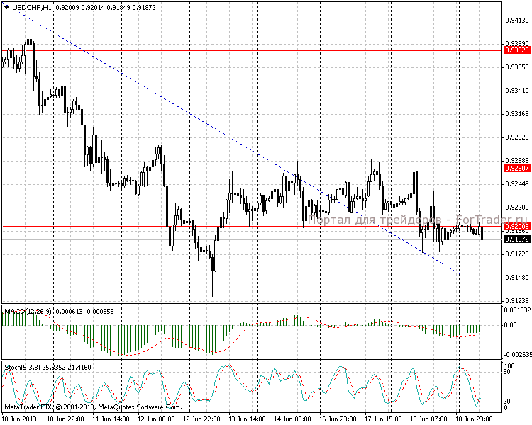 Сегодня внимание всех участников рынка будет сосредоточено на выступлении главы ФРС Б. Бернанке, которое запланировано на 22.30 мск. От него ждут заявлений об изменении объемов ежемесячных покупок активов. До этого времени резкие движения маловероятны, а дальнейшая динамика валютной пары будет определяться результатами выступления. Среднесрочная цель для продавцов сохраняется на уровне 0,9050.