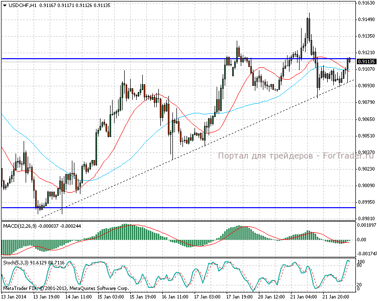В данный момент следует выбрать выжидательную тактику. При пробое линии тренда и вчерашнего минимума 0,9083 можно рассматривать продажи с целями до 0,9000.